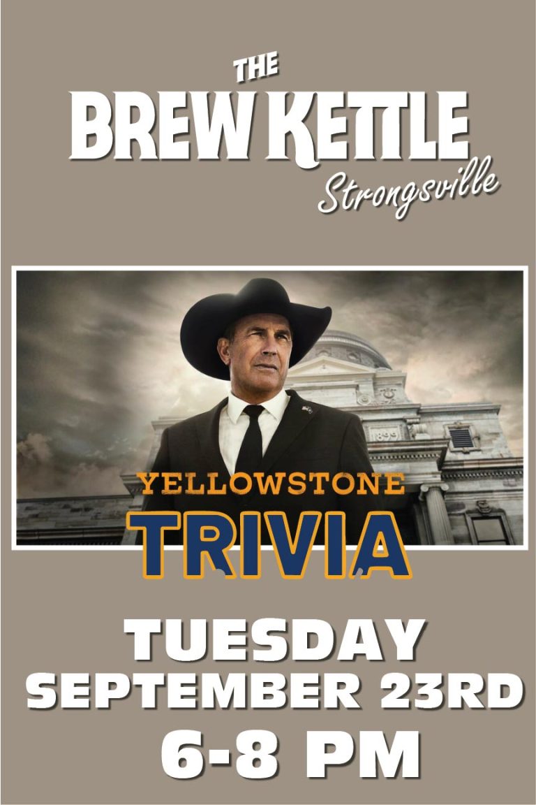 Join us at the Brew Kettle in Strongsville for Yellowstone Trivia night September 23rd 6-8 pm.