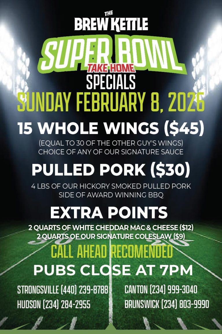 Get game-day ready with our smoked whole wings, mouthwatering pulled pork, and your choice of white cheddar mac & cheese or our signature coleslaw—a guaranteed winner for any Super Bowl party!