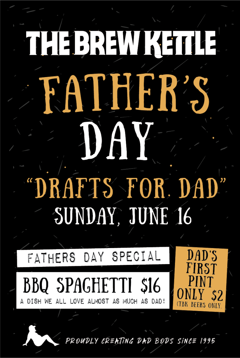 Come to the Brew Kettle on Fathers Day, First TBK pint is $2
